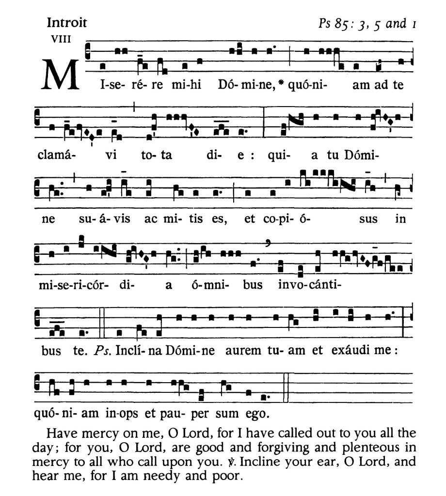 Miserére mihi, Dómine, quóniam ad te clamávi tota die: quia tu, Dómine, suávis ac mitis es, et copiósus in misericórdia ómnibus invocántibus te.+ 1 / Inclína, Dómine, aurem tuam mihi, et exáudi me: quóniam inops, et pauper sum ego.