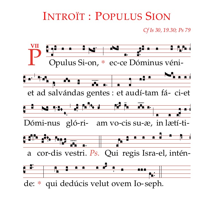 Pópulus Sion, ecce, Dóminus véniet ad salvándas gentes : et audítam fáciet Dóminus glóriam vocis suæ in lætítia cordis vestri. +Salm 79, 2 Qui regis Israël, inténde : qui dedúcis, velut ovem, Ioseph.